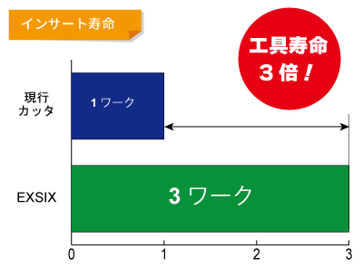 | ・工具寿命延長 現行の他社製ショルダーカッタでは、工具寿命が1ワークすらもたず。EXSIXでの加工を提案したところ、3ワーク以上の寿命延長を実現!寸法だし、加工面精度ともに申し分なしの高評価! |