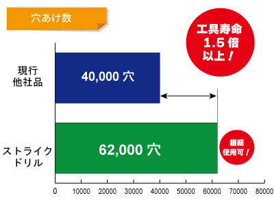 現行品では、工具の摩耗が進行するたびに穴径の拡大や位置ズレが発生する。